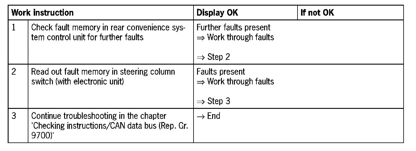 NOTE: An interruption to CAN comfort can only occur if the fault '1330 rear convenience system control unit' is present in the steering column switch control unit