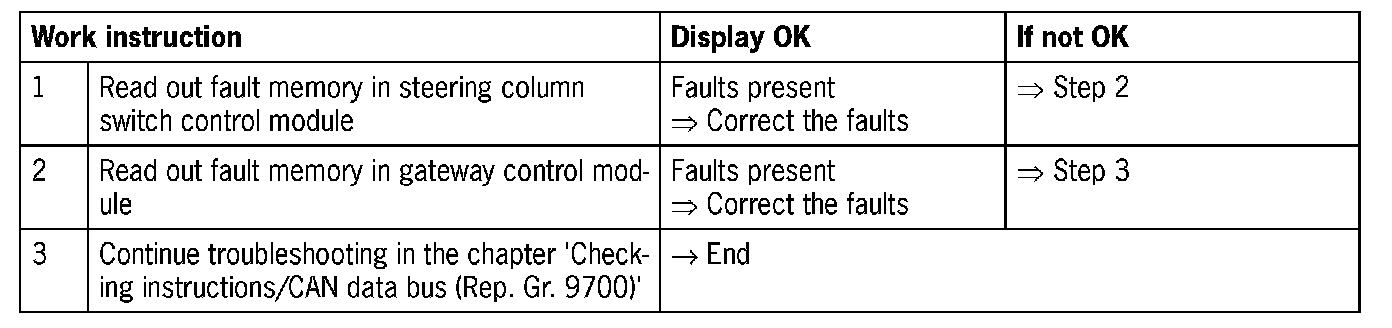 - No signals/communication with steering column switch via CAN Infotainment, gateway or CAN comfort