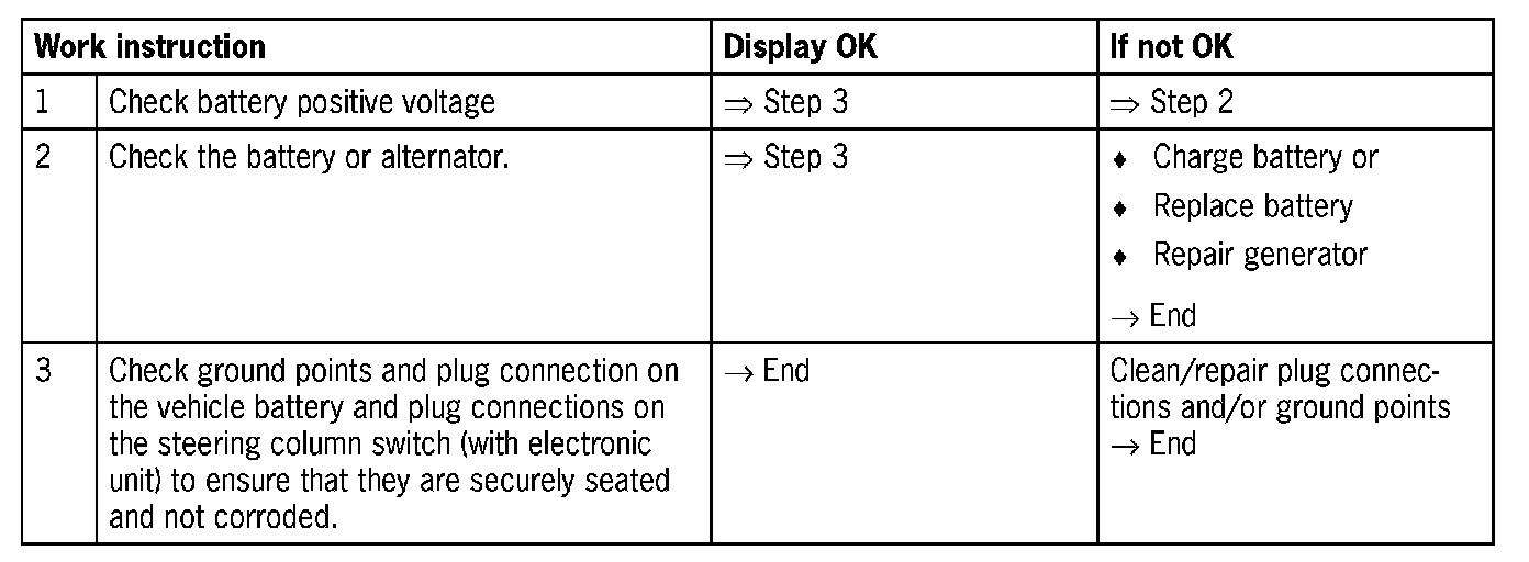 Battery positive voltage: A battery positive voltage of between 11.4 and 14.5 V is required for the following troubleshooting procedure. This must be checked and ensured, if necessary. On the vehicle electrical system, the voltage must be ensured up to the fuse (input side).
