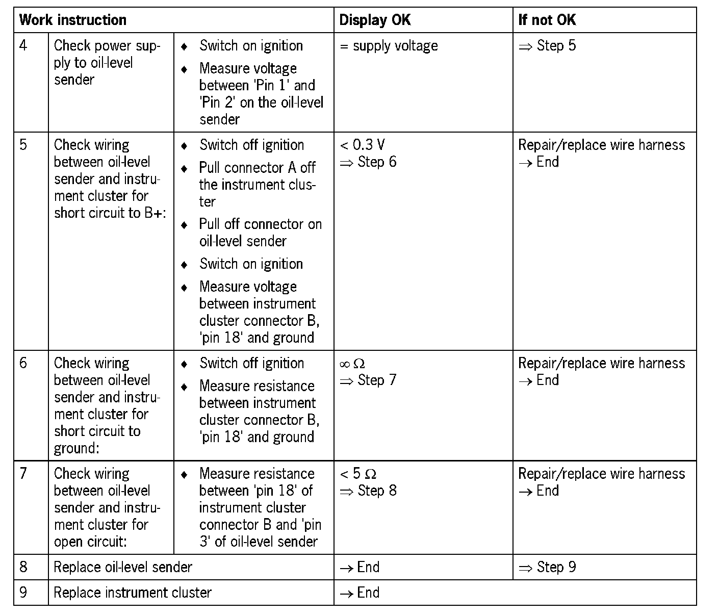 - Once the 'Check oil level' warning has disappeared, a new warning will not be issued when the oil level is low until at least 100 km (62 miles) have been covered (oil temperature > 30 °C / 86 °F).