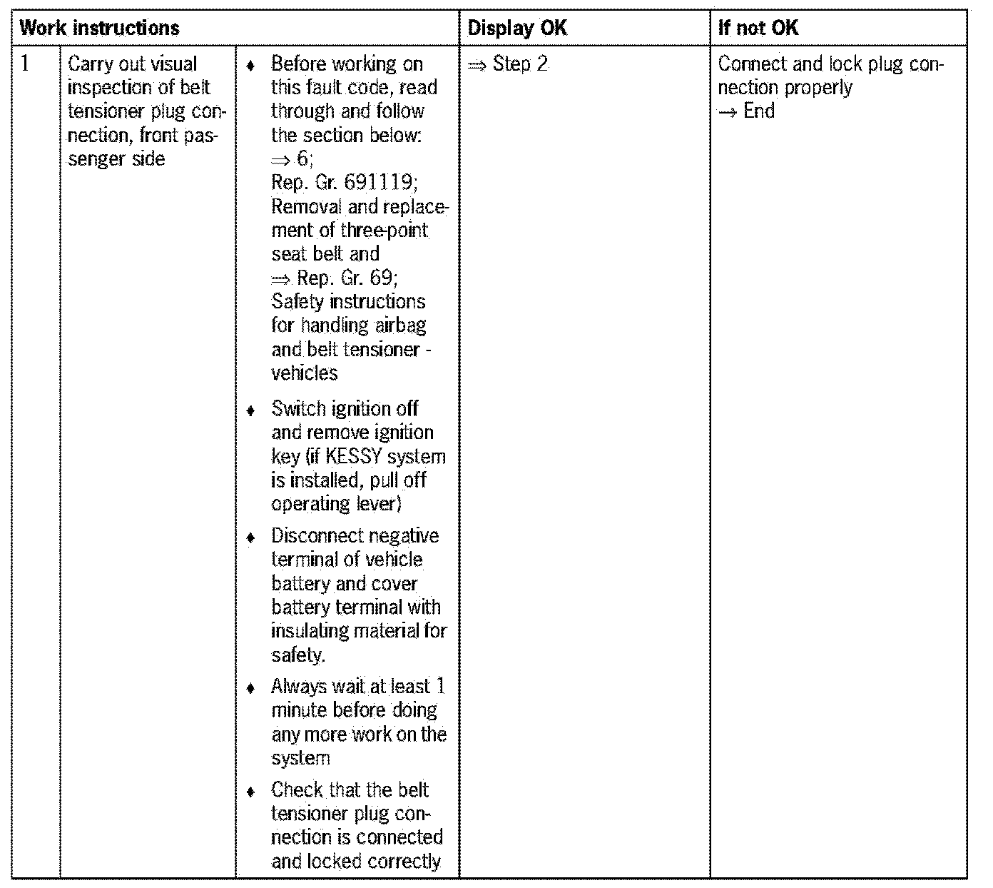 Fault code 0655Belt tensioner ignition circuit, front passenger side