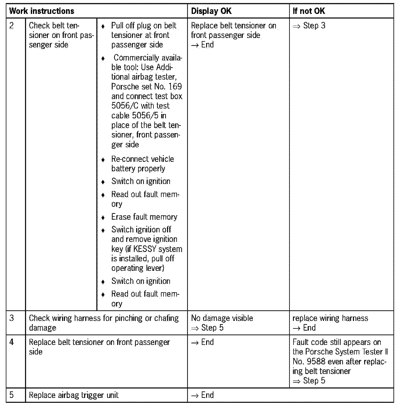 - Short circuit to positive (with respect to wiring from Pins 63 and 64 of airbag triggering unit and belt tensioner on front passenger side)