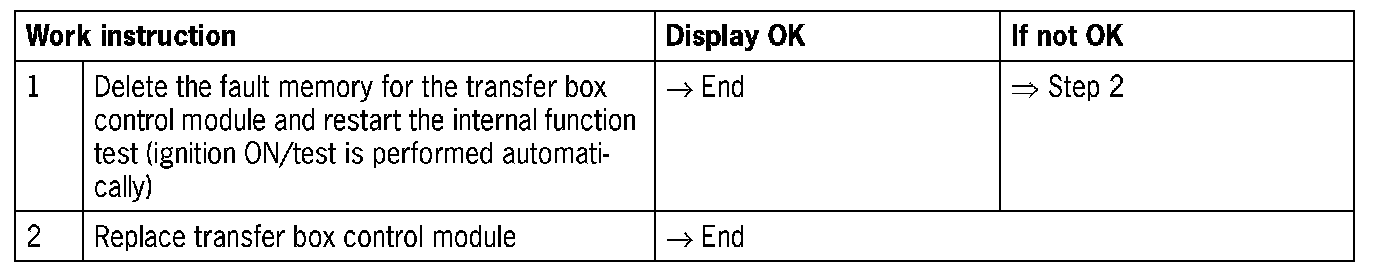 - When the ignition is switched on, an internal function test is performed in the transfer box control module, but this was not completed successfully (implausible signal)