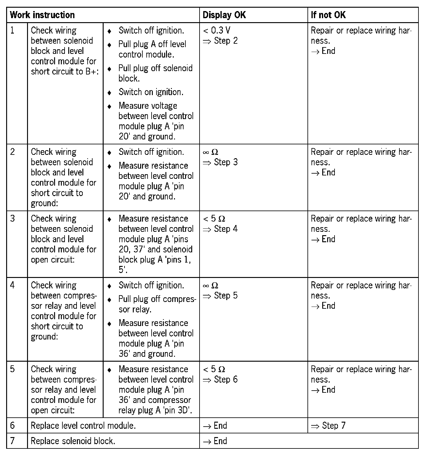 - Short circuit to B+ in the wiring of pin 20 of the level control module