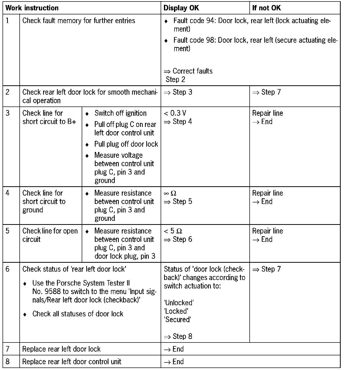 Fault code 0930Rear left door lock (checkback)