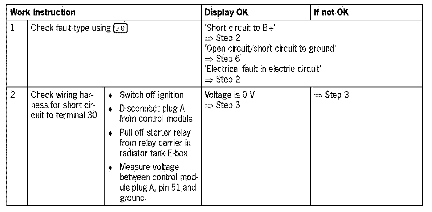 NOTE: Conventional diagnosis/troubleshooting cannot be performed for the fault type 'short circuit to B+', which is displayed using the 'F8' key in the 9588 Porsche System Tester II. The reason for this is that the ignition cannot be switched on when there is no control module connected. As a result, it is not possible to differentiate uniquely between a short circuit to terminal 30 and a short circuit to terminal 15. A thorough visual inspection of components and wiring must therefore be carried out before replacing a control module.