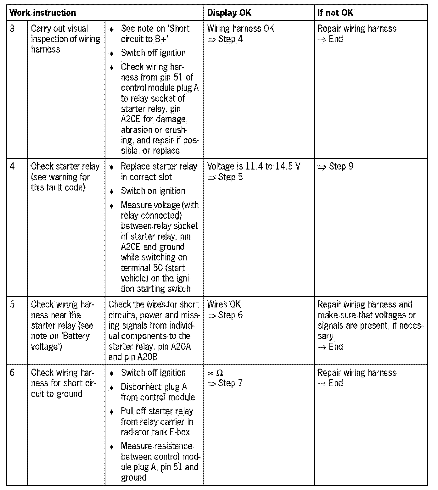 - Starter relay in relay carrier in radiator tank E-box: Pin A20E