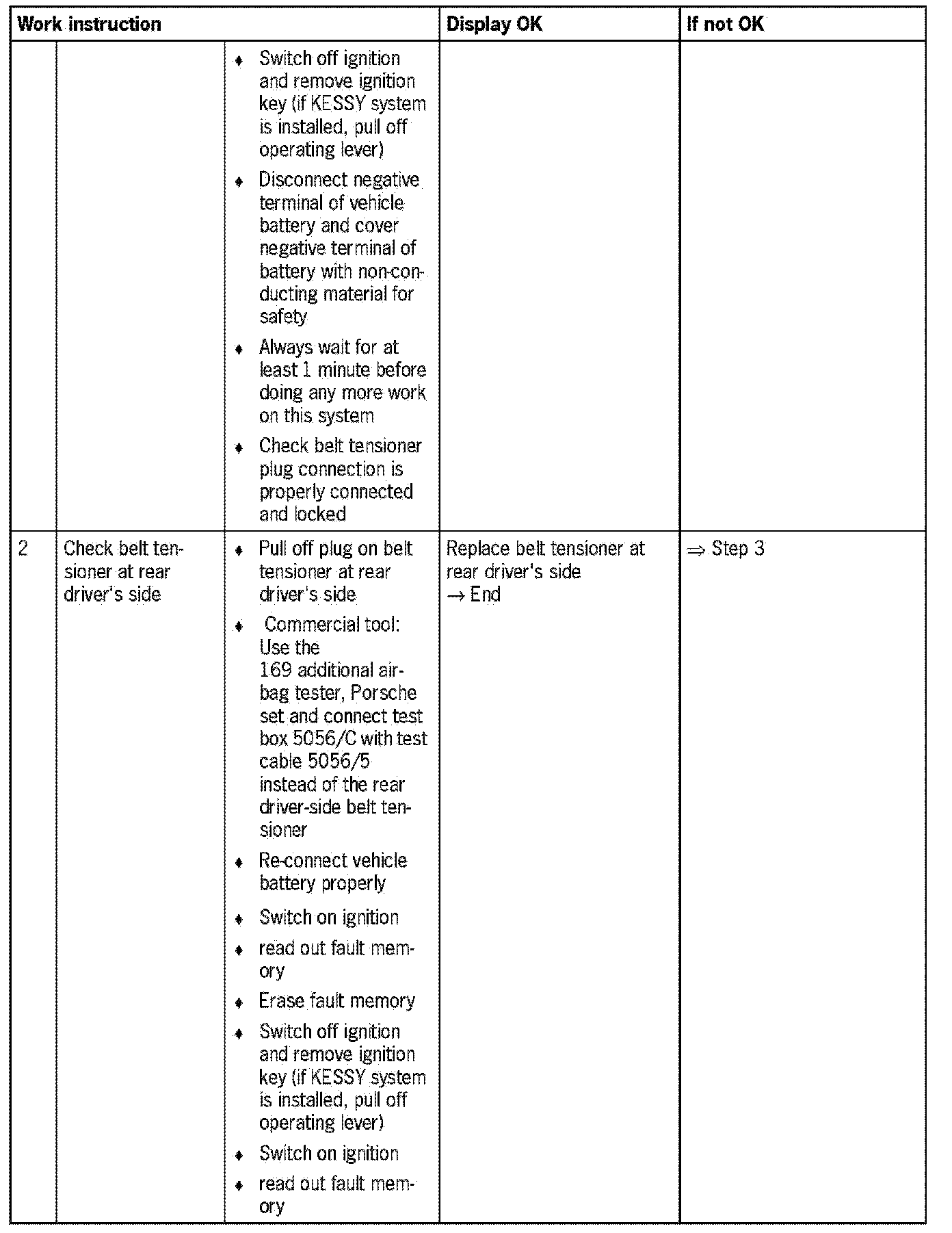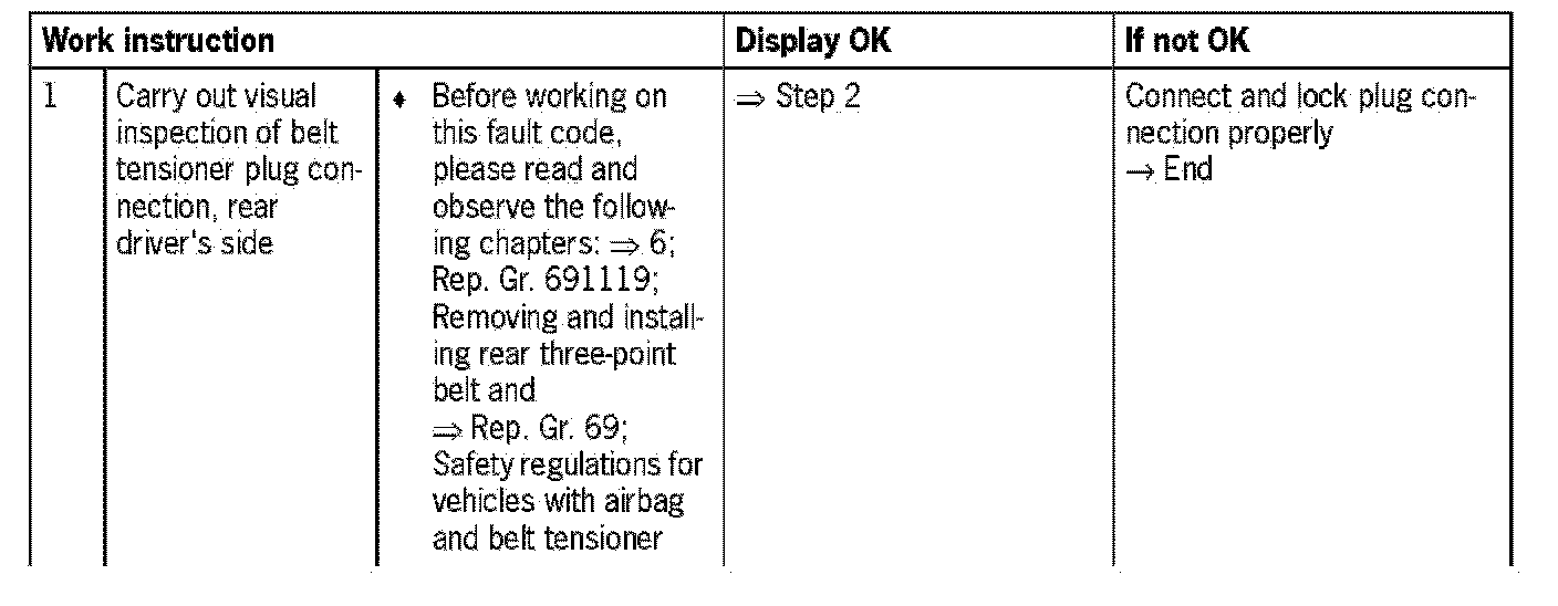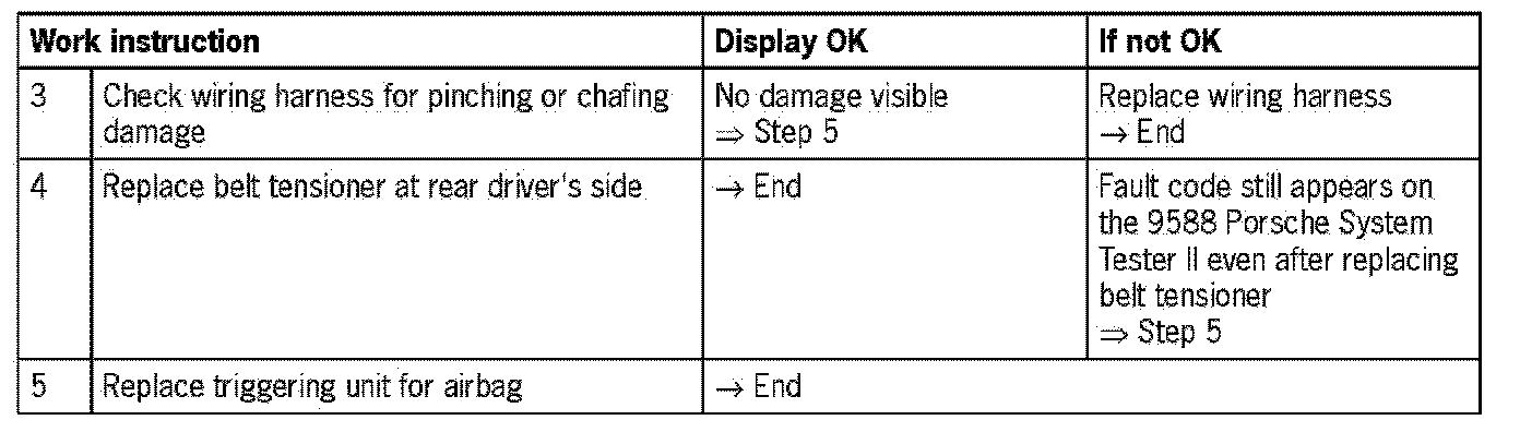 - Open circuit (based on wiring from airbag triggering unit to belt tensioner or of belt tensioner itself)