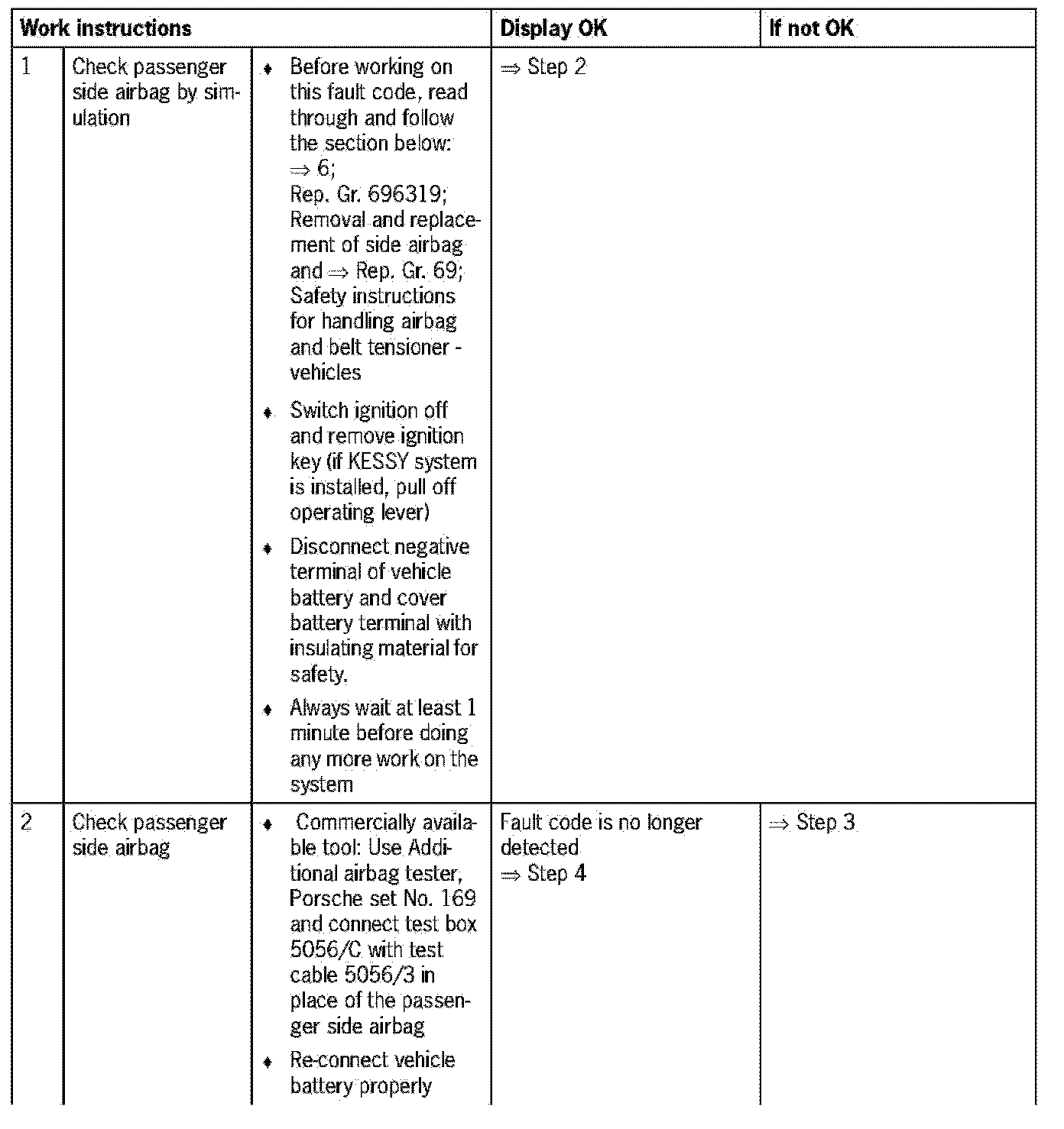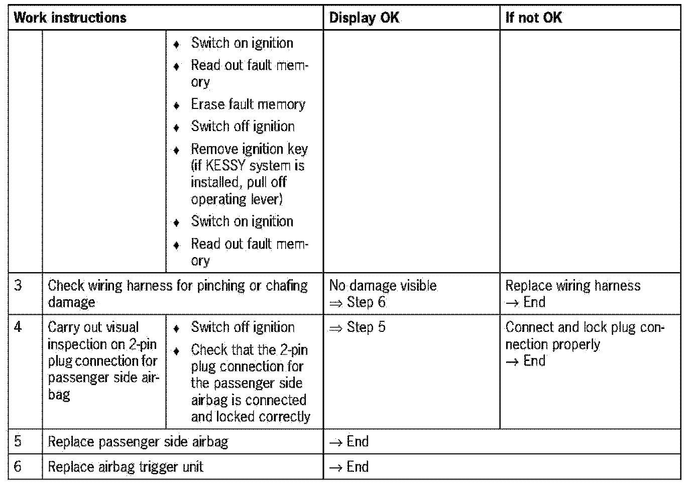 - Lower limit not reached (based on resistance of passenger side airbag and wiring between airbag trigger unit and passenger side airbag)