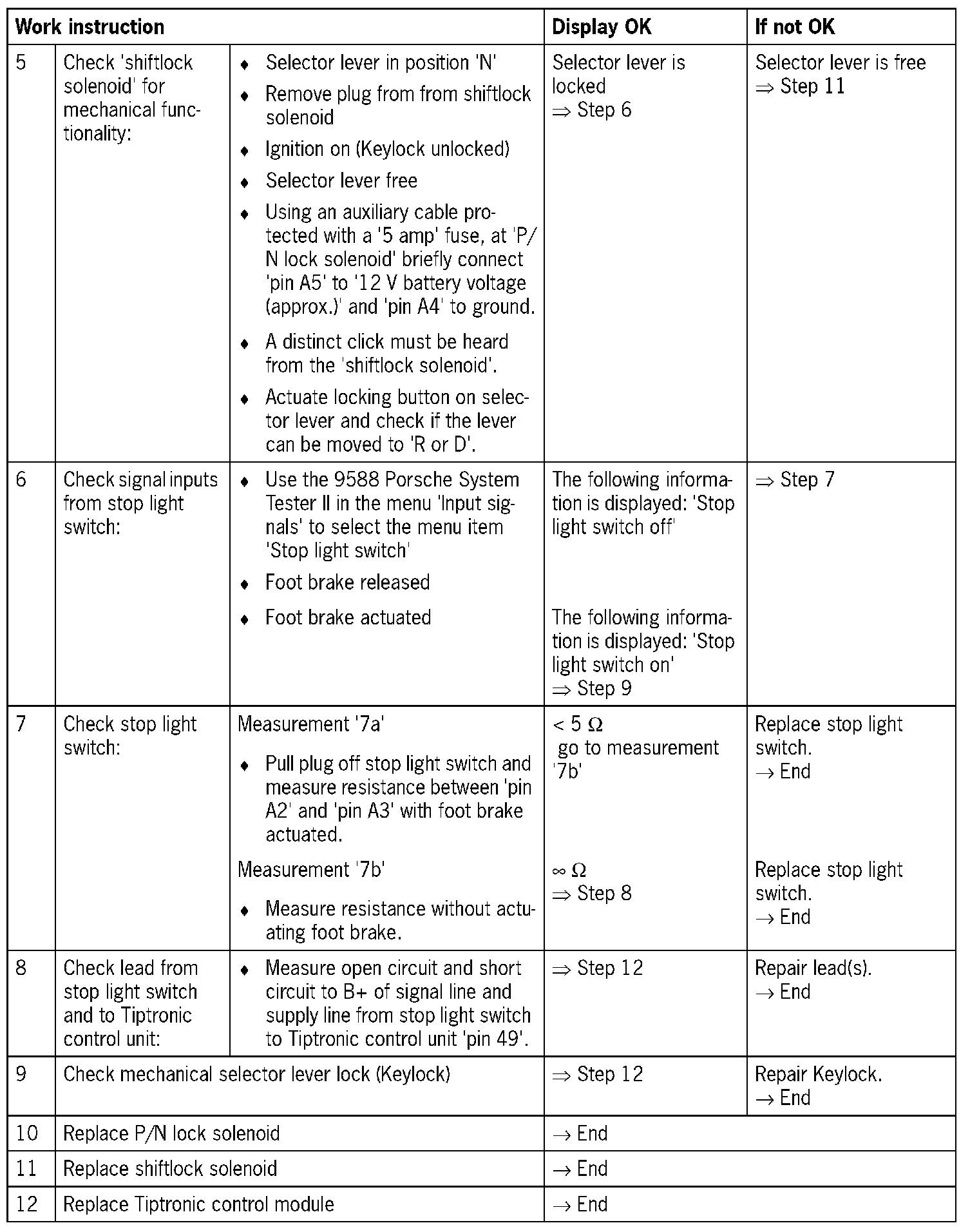 Control unit replacement: Before replacing the 'Tiptronic control unit', the ground connections, power supply and plug connections on the control unit must be checked as OK. Please observe the coding of the control module. After the test drive, read out the fault memory with the 9588 Porsche System Tester II again. Additional causes of faults that could damage the 'Tiptronic control module' should be detected and remedied.
