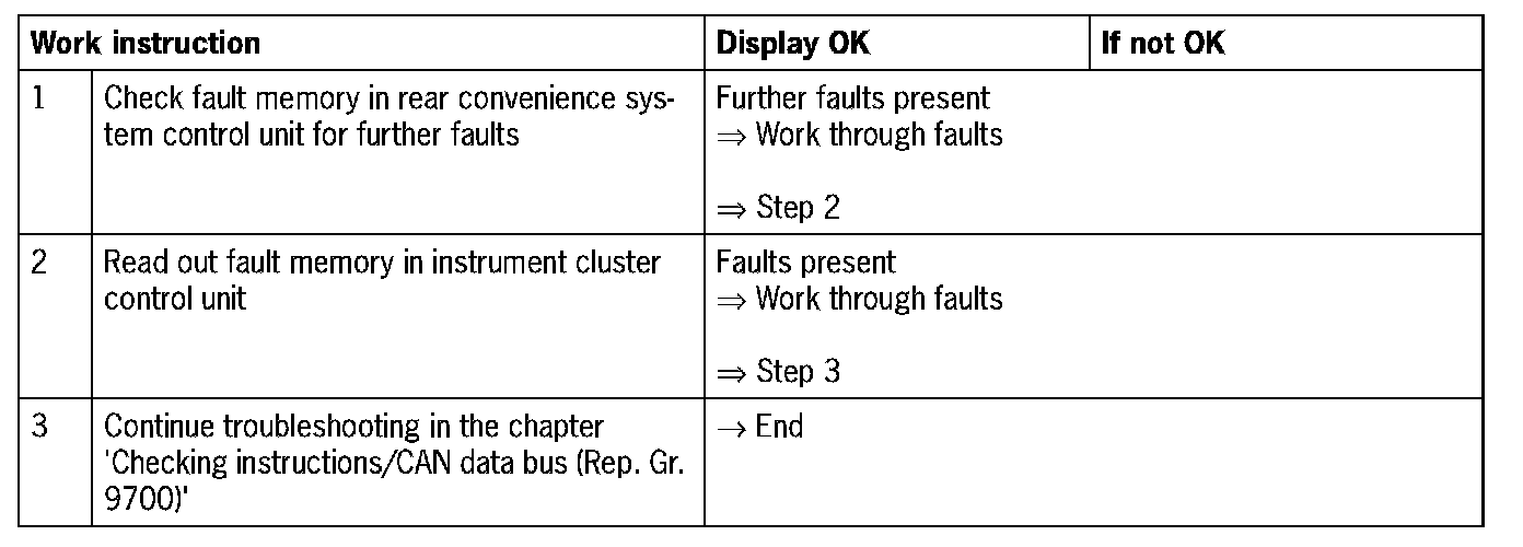 NOTE: An interruption to CAN comfort can only occur if the fault '1330 rear convenience system control unit' is present in the instrument cluster control unit