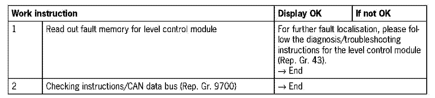 Fault code 1310Level control module