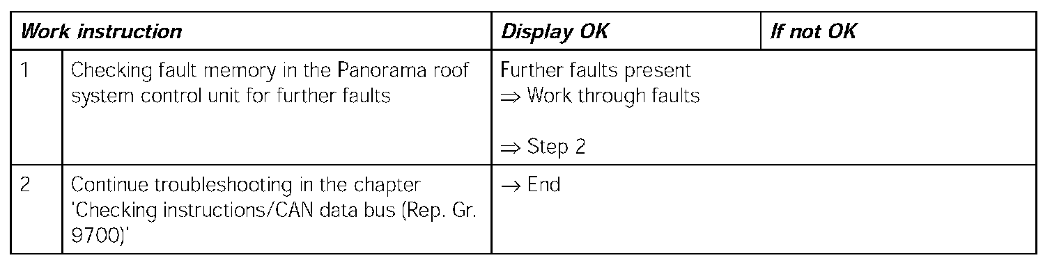 - Panorama roof system (PDS) control unit, internal function test