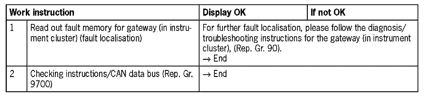 - To localise the fault, read out the fault memory for the 'gateway (in instrument cluster)' (Please read out fault memory)