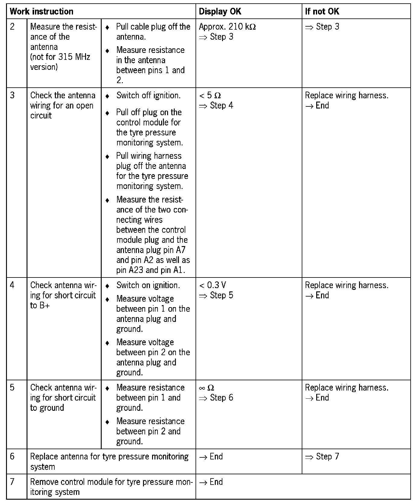 NOTE: The resistance of the antenna cannot be reliably measured in antennae of the 315 MHz variety (light grey colour).