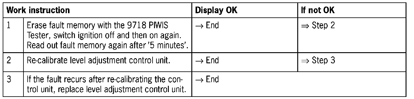 - Level adjustment control unit not calibrated or calibrated incorrectly (implausible signal)
