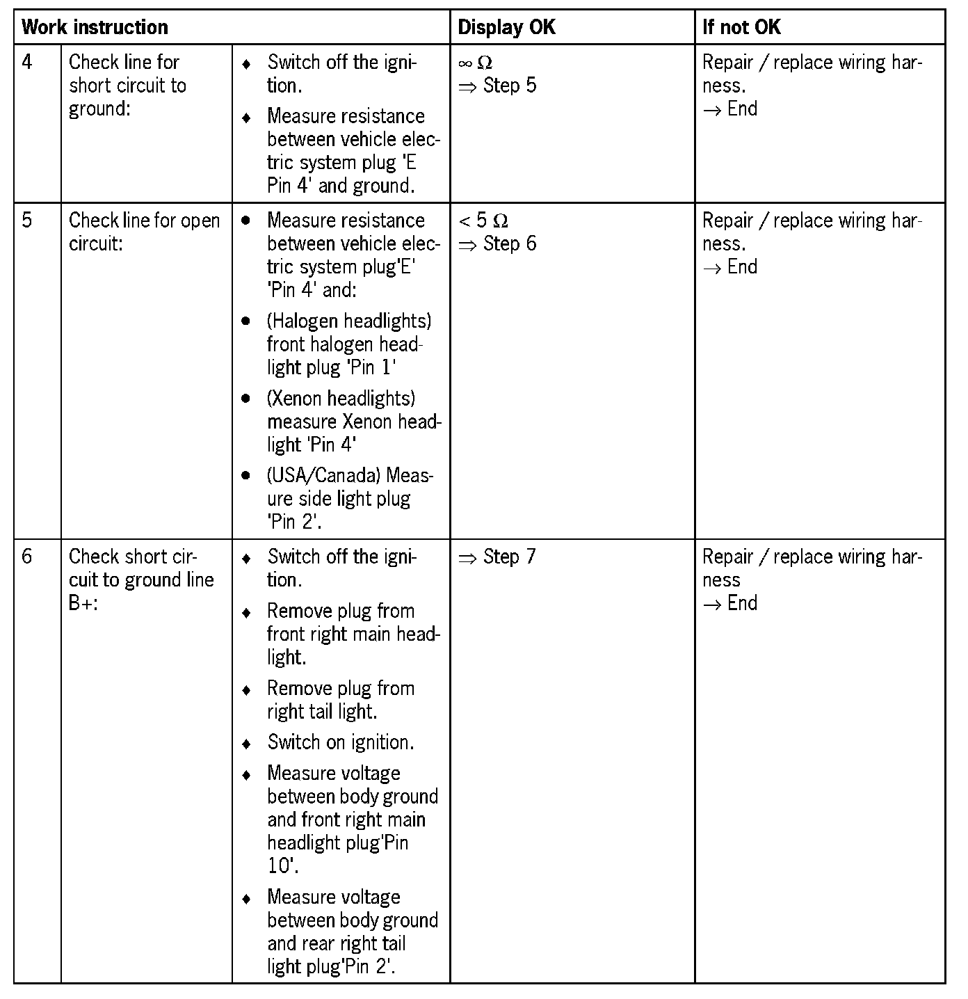 - 'Open circuit/short circuit to B+' Continuous lighting of bulb(s) in the event of a 'short circuit to B+', can only be diagnosed when side light is switched on.