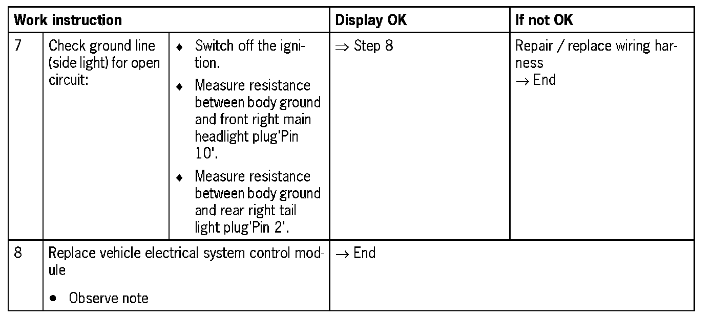 - 'Short circuit to ground' Failure of side light bulb(s) can only be diagnosed when side light is switched on.