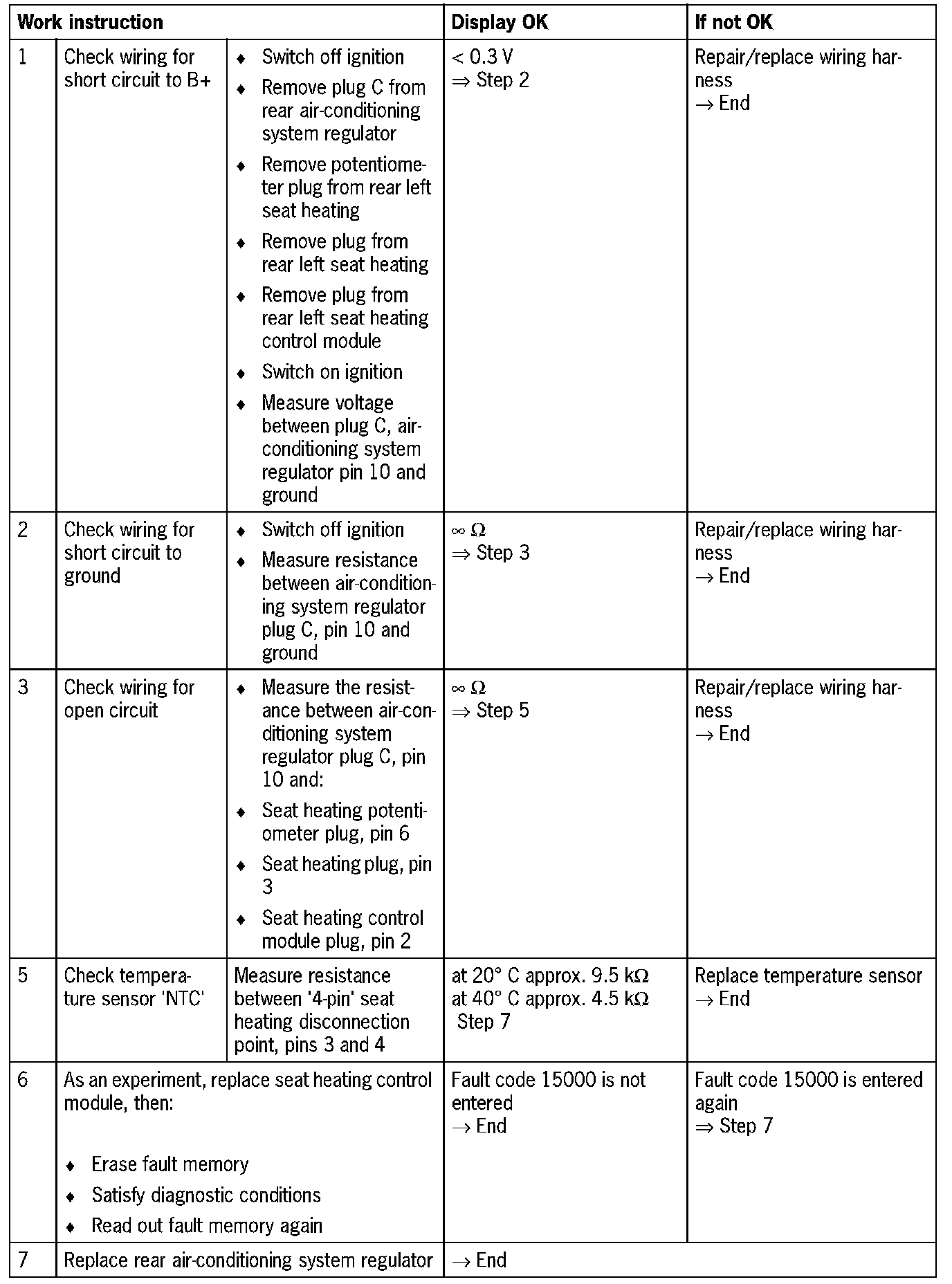 Fault code 15500Temperature sensor rear left seat heating
