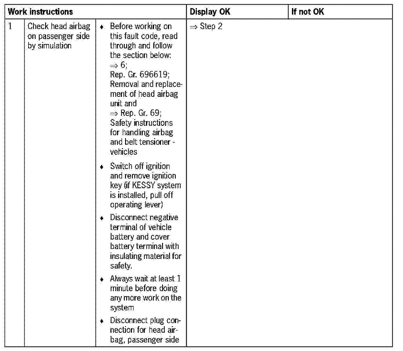 Fault code 1589Head airbag ignition circuit, passenger side