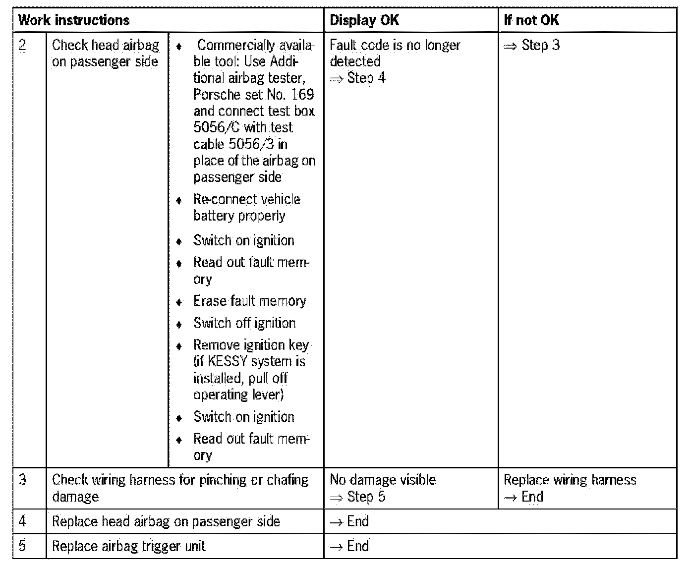 - Upper limit exceeded (based on resistance of head airbag on passenger side and wires between airbag trigger unit and head airbag on passenger side)