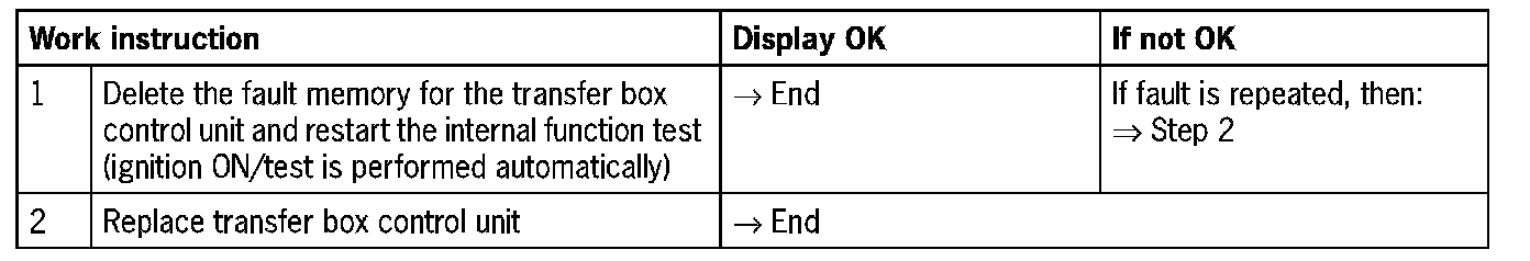 - 'Implausible signal': fault detected in computer during internal function test in transfer box control unit.