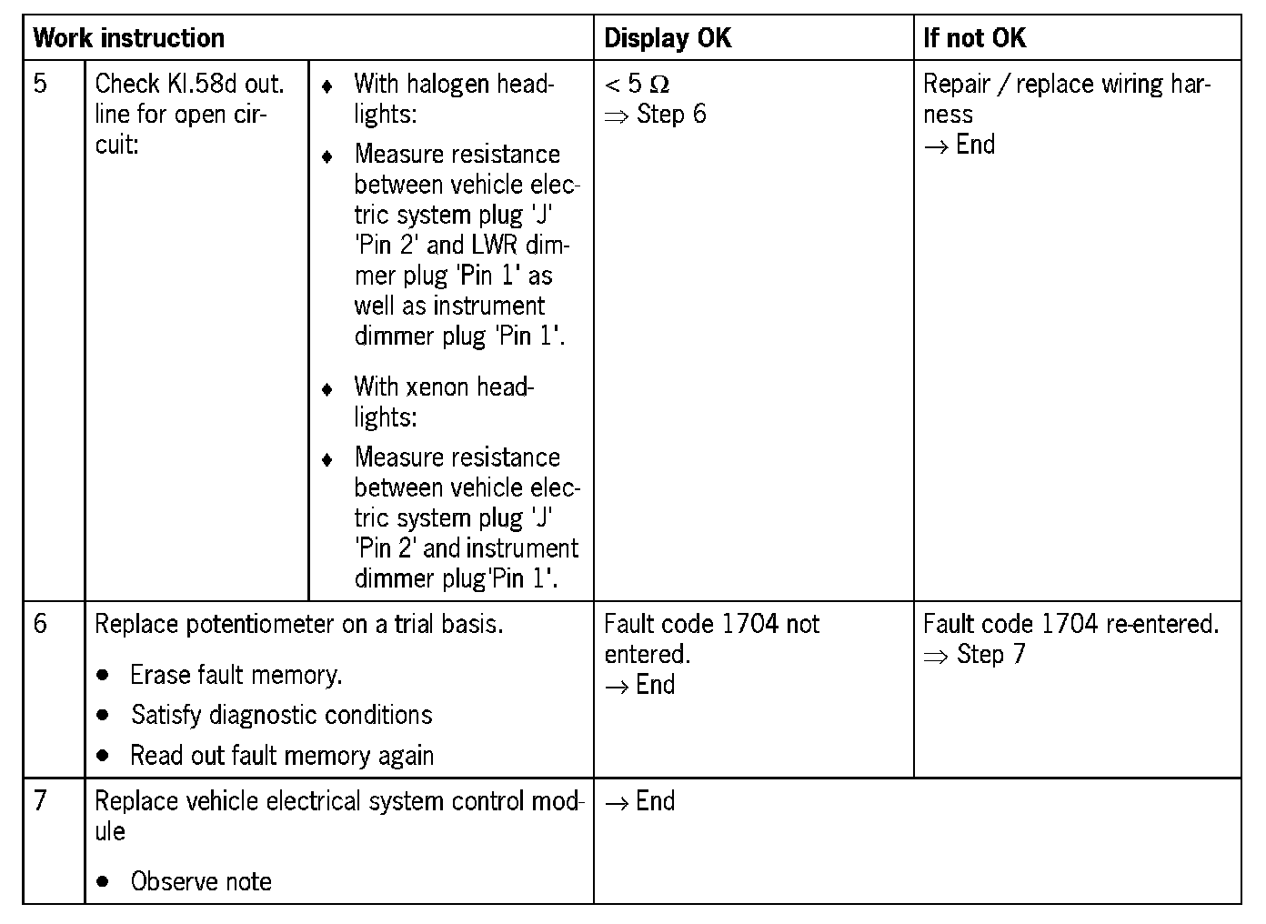 Fault code 1704Terminal 58d (instrument lighting dimming)