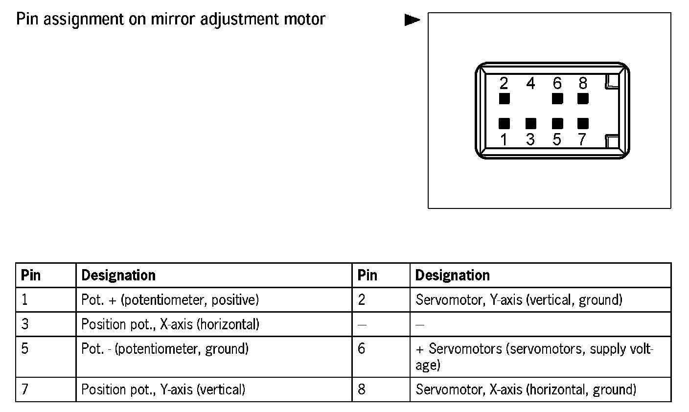 - Potentiometer for driver's horizontal mirror adjustment faulty