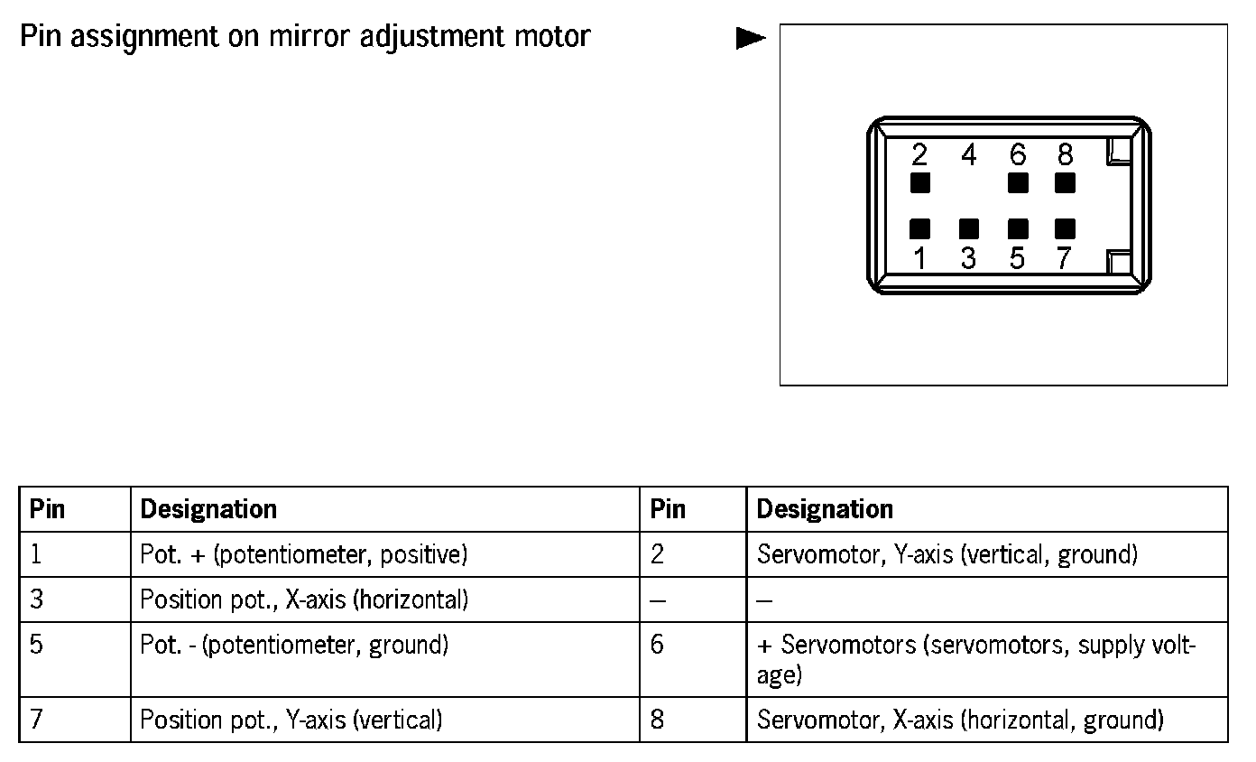 Pin assignment on mirror adjustment motor