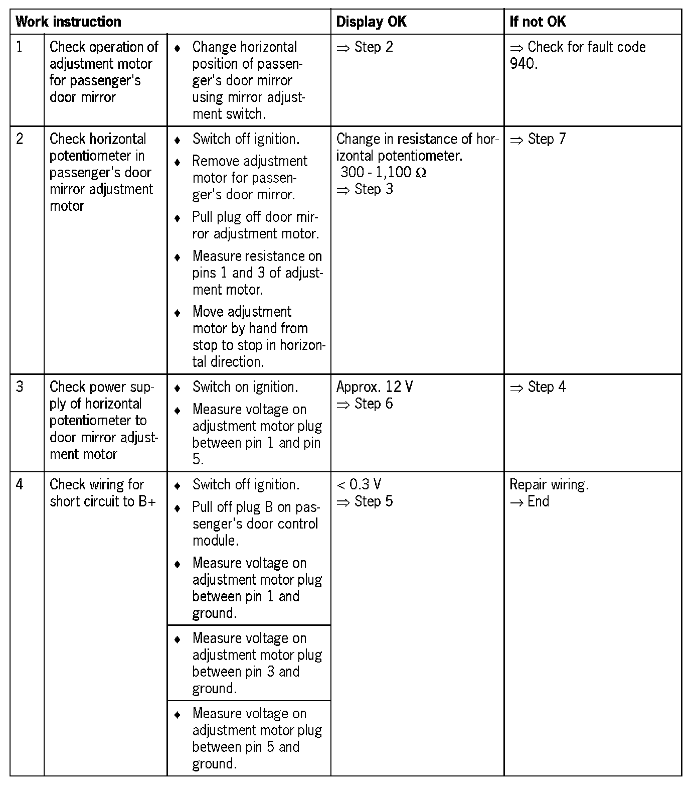 - Horizontal adjustment motor for passenger's door mirror does not function