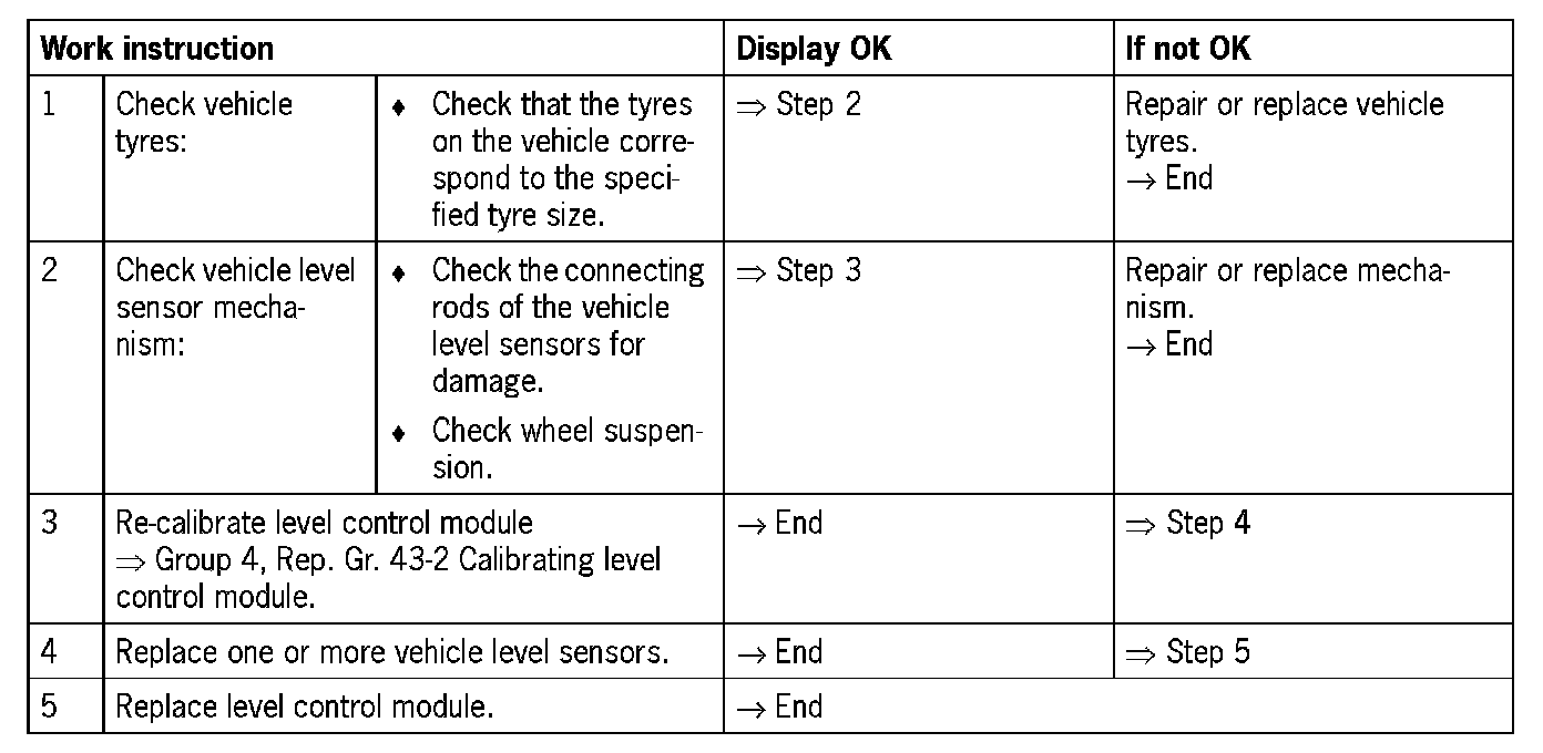 - Vehicle level sensors need to be calibrated --> Group 4 - Running gear (Rep. Gr. 43-2)