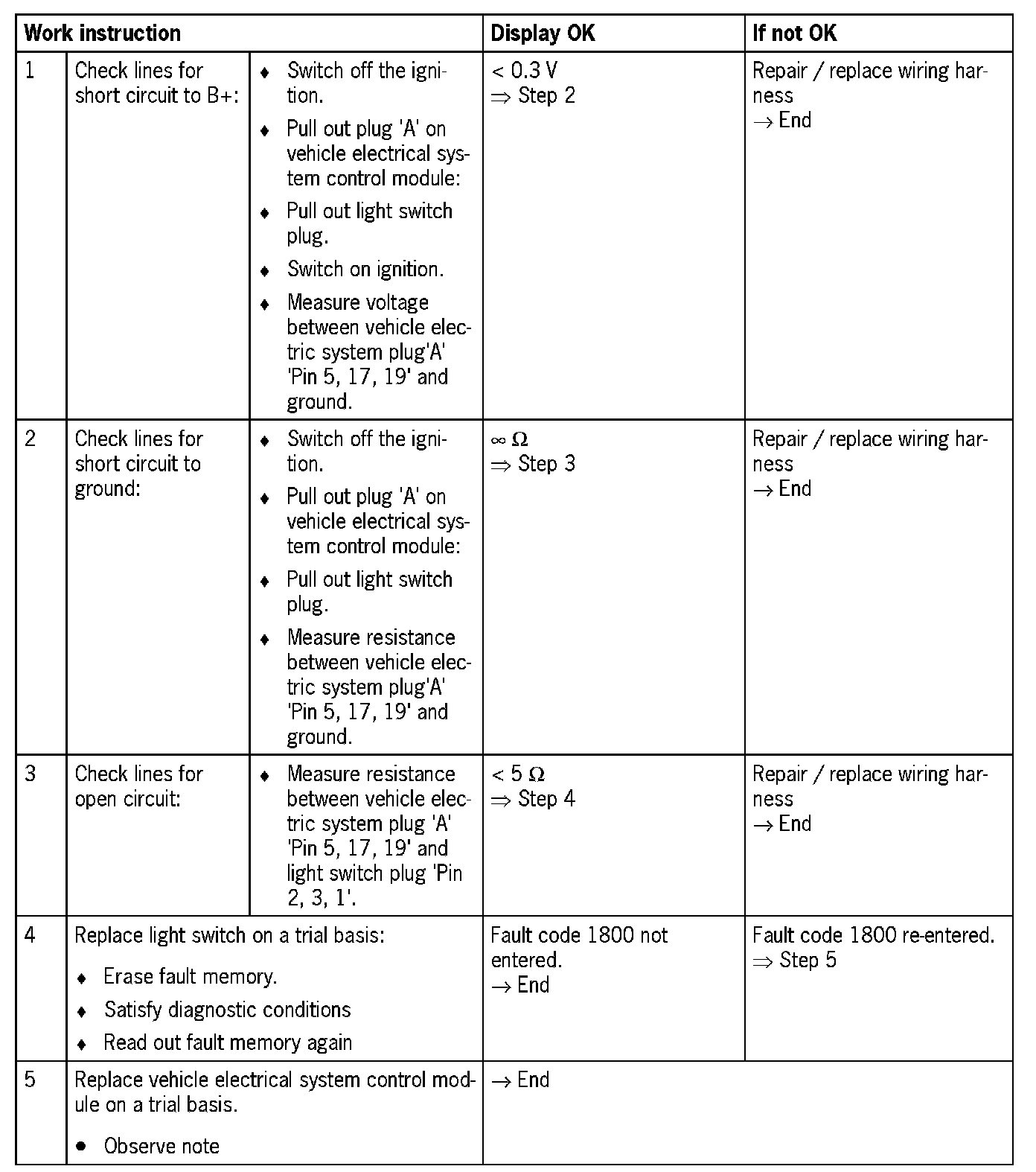 - 'implausible signal' With 'Ignition on' the dipped beam headlight comes on.
