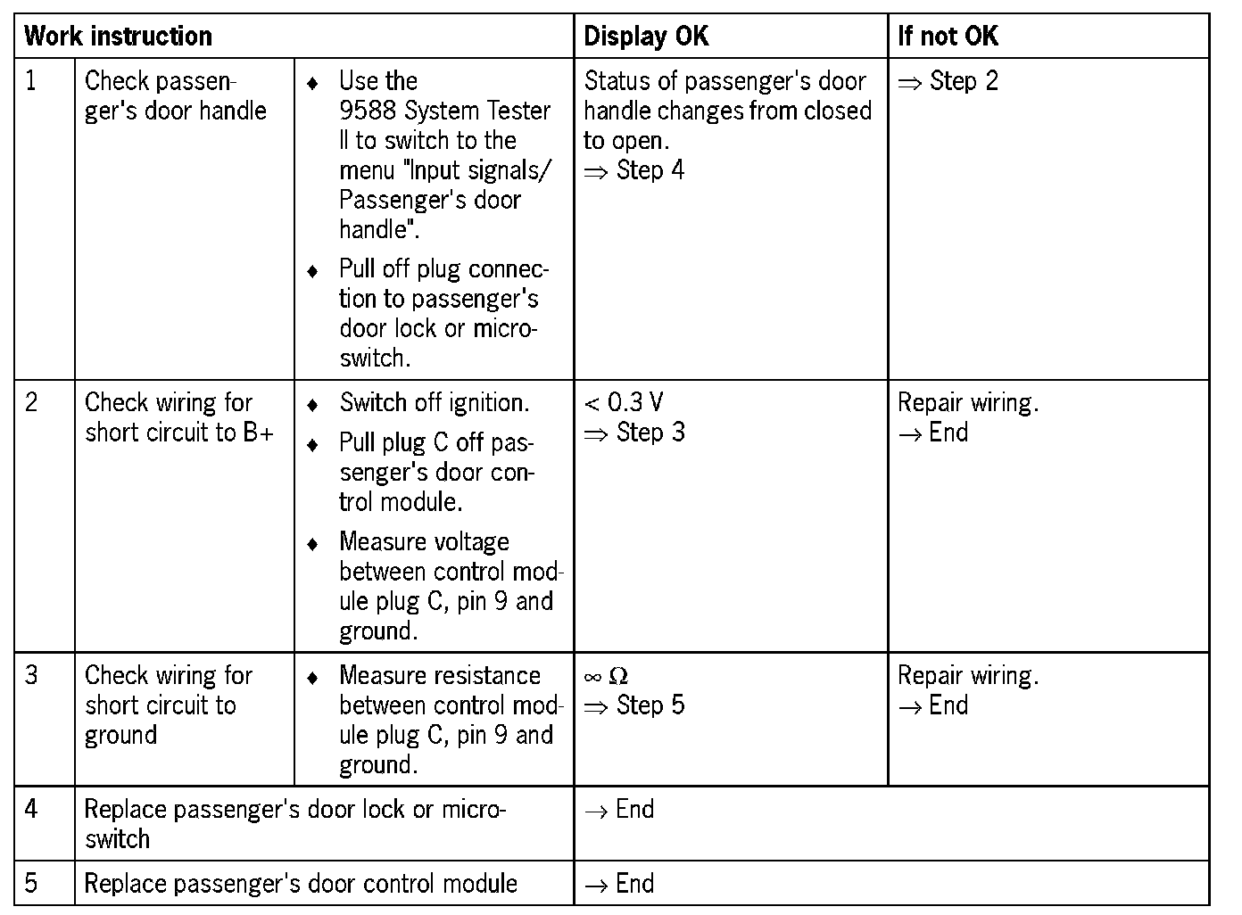 - Internal function test on passenger's door control module