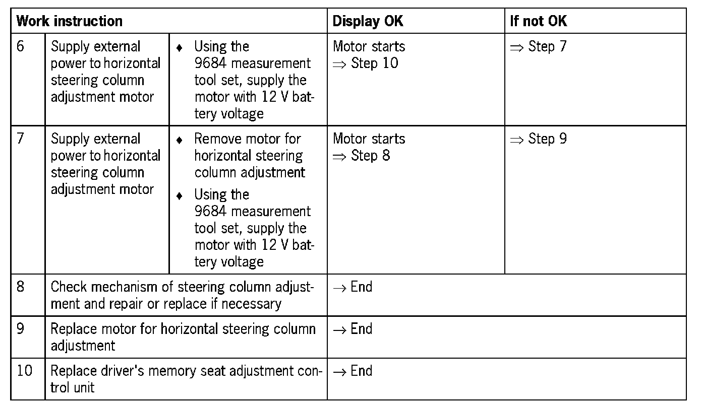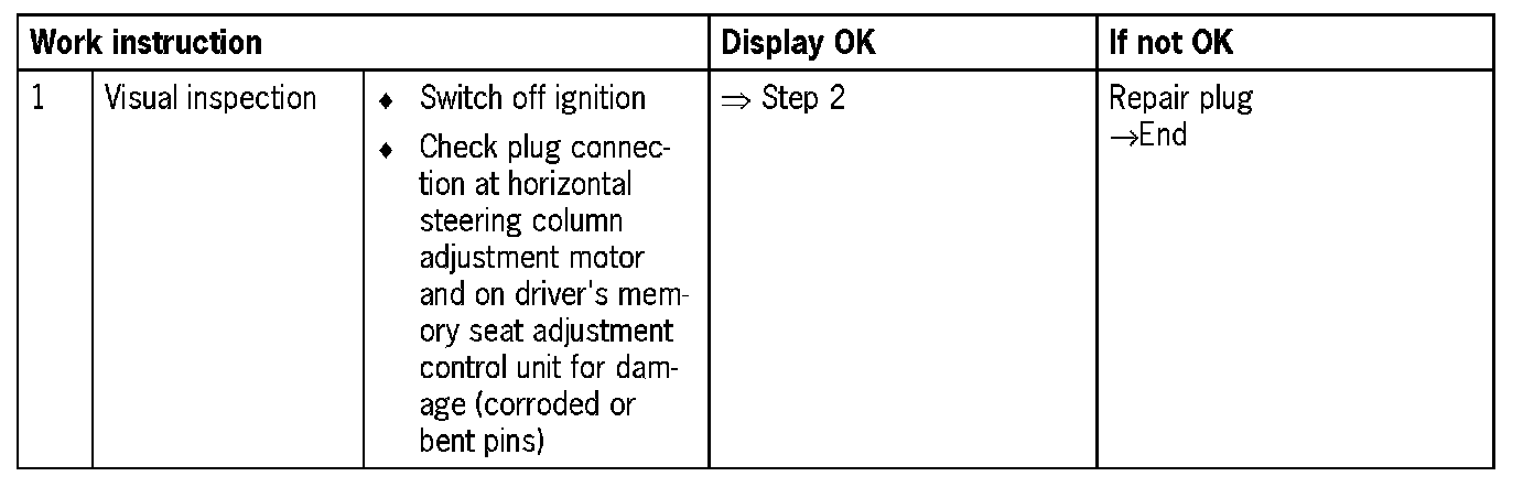 - No steering column adjustment possible in horizontal direction (Electrical fault in electric circuit)
