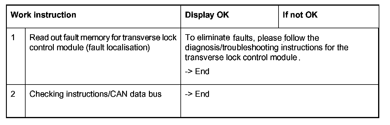 - To localise the fault, read out the fault memory for the transverse lock control module (Please read out fault memory)