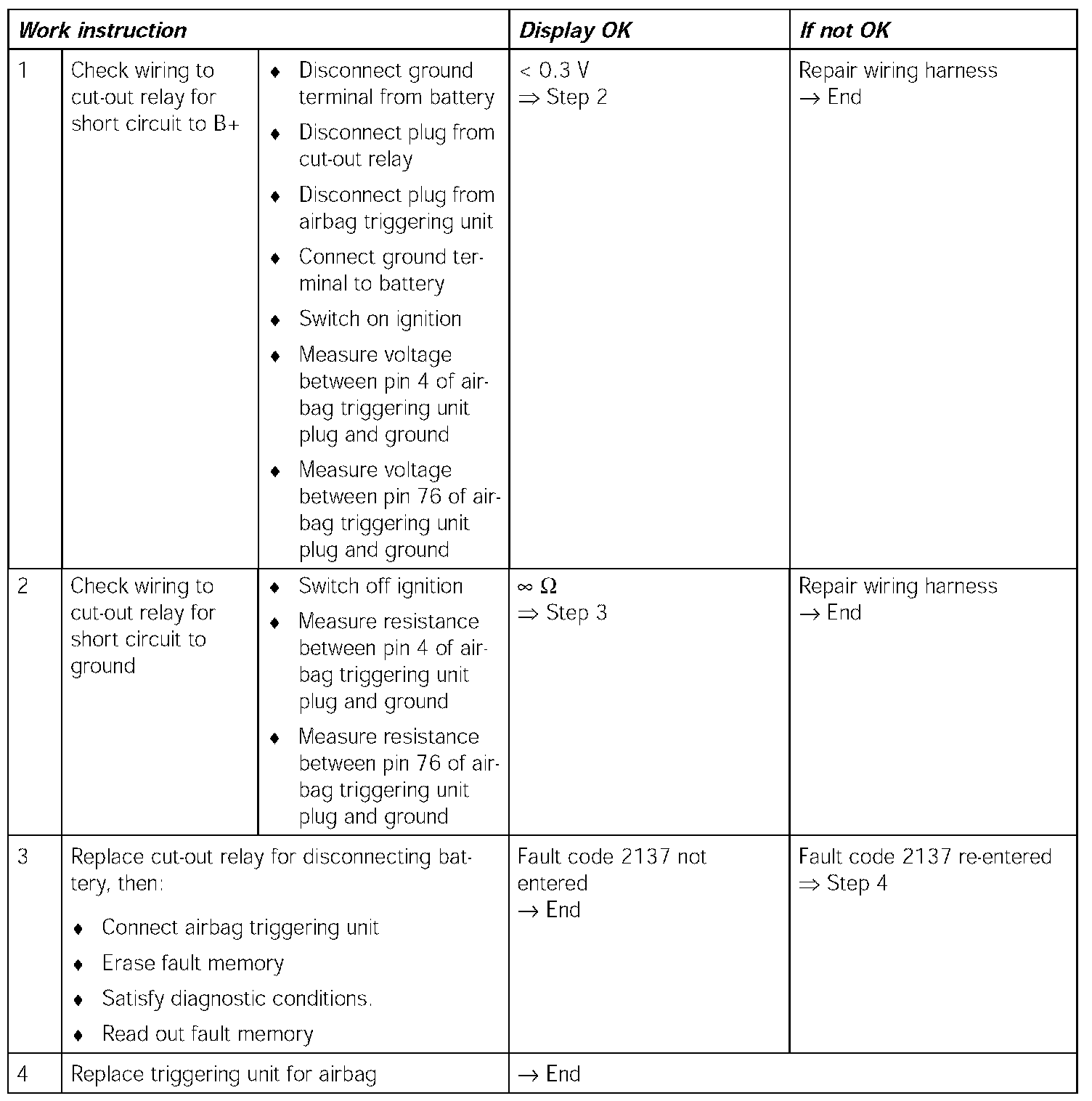 - Airbag triggering unit faulty