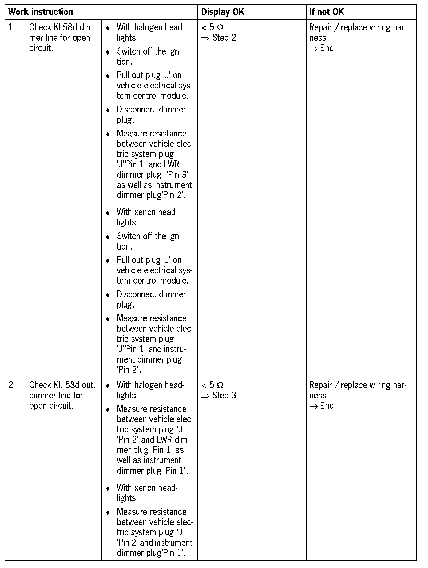 - Pin 2 'terminal 58d signal input of potentiometer for setting instrument lighting'
