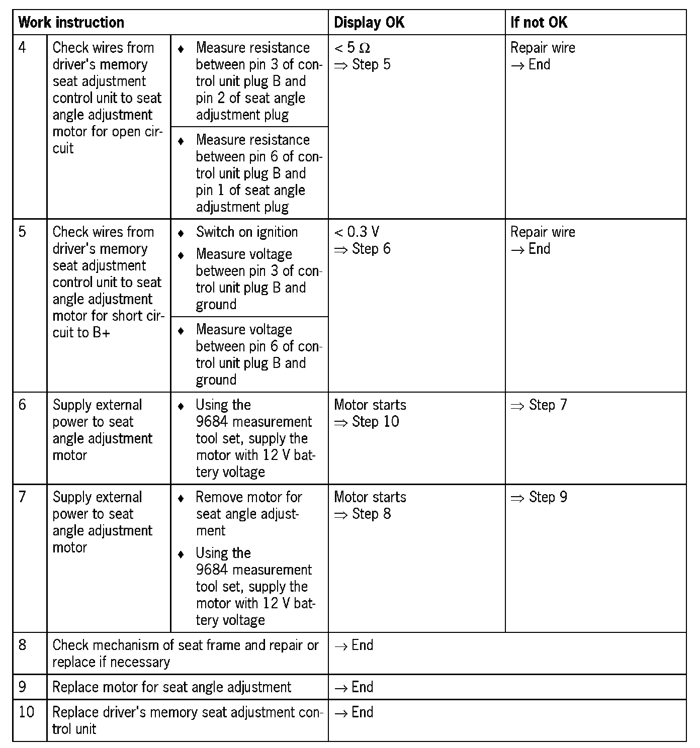 - Seat angle adjustment motor does not function (open circuit)