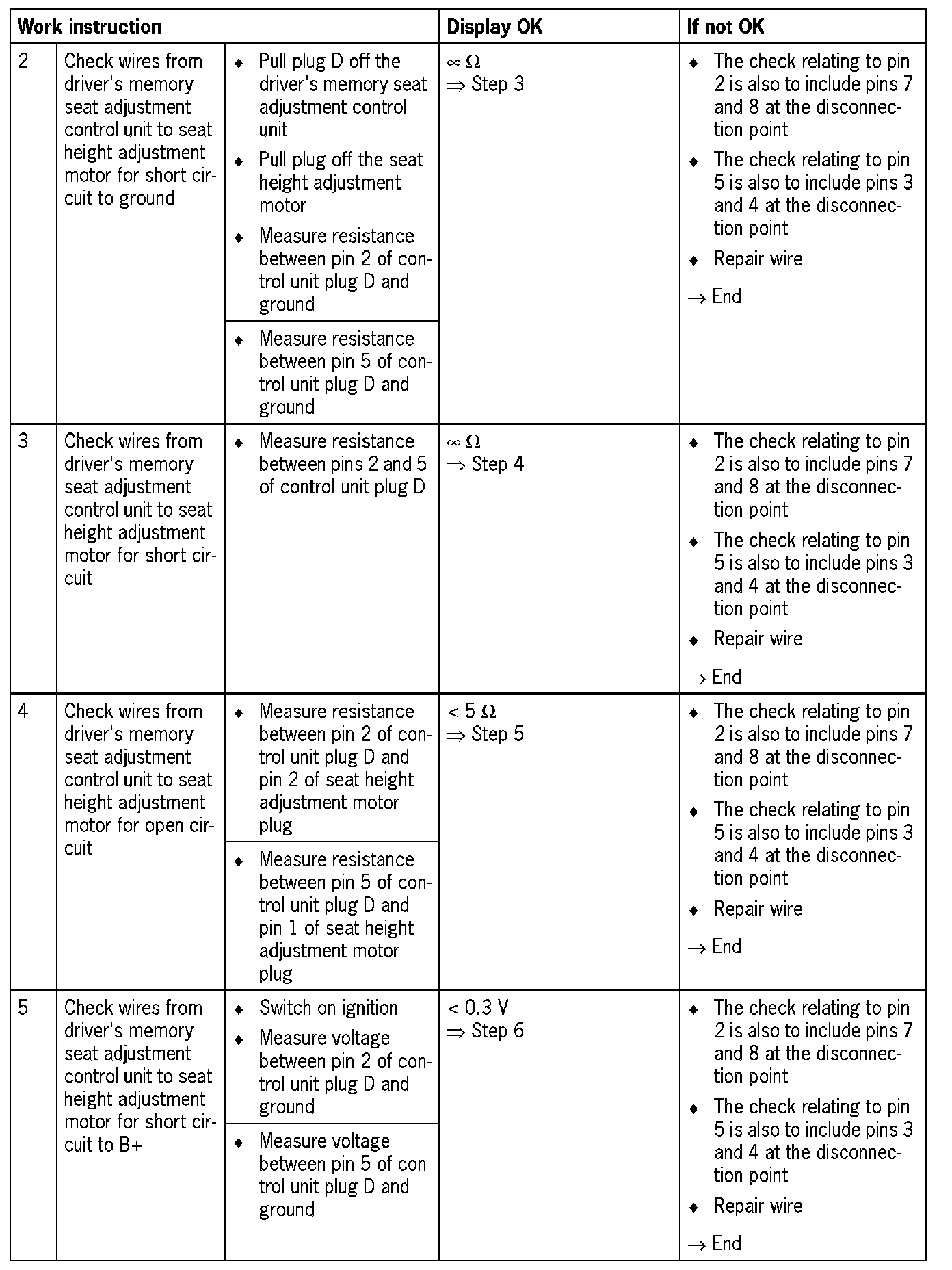 - Seat height adjustment motor does not function (Short circuit to ground)