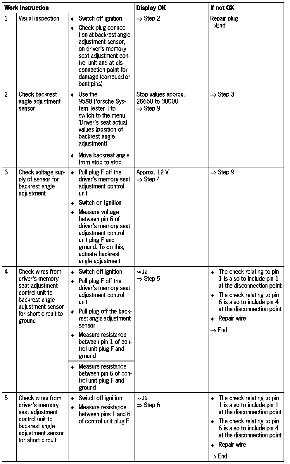 - In the wiring harness from the driver's memory seat adjustment control unit to the backrest angle adjustment sensor, there is a disconnection point which must be included in the checks.