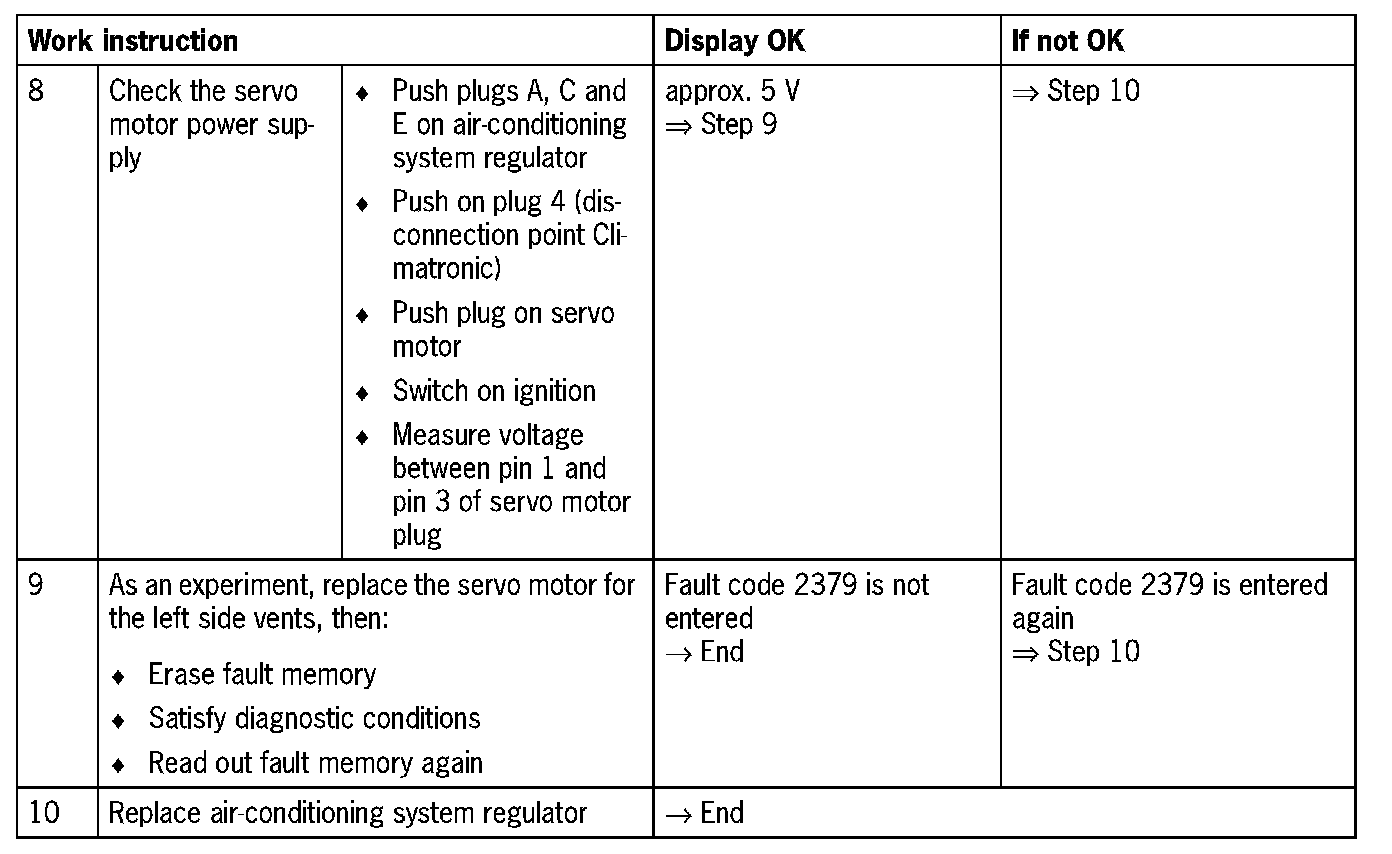 Fault code 2379Servo motor for left side vents