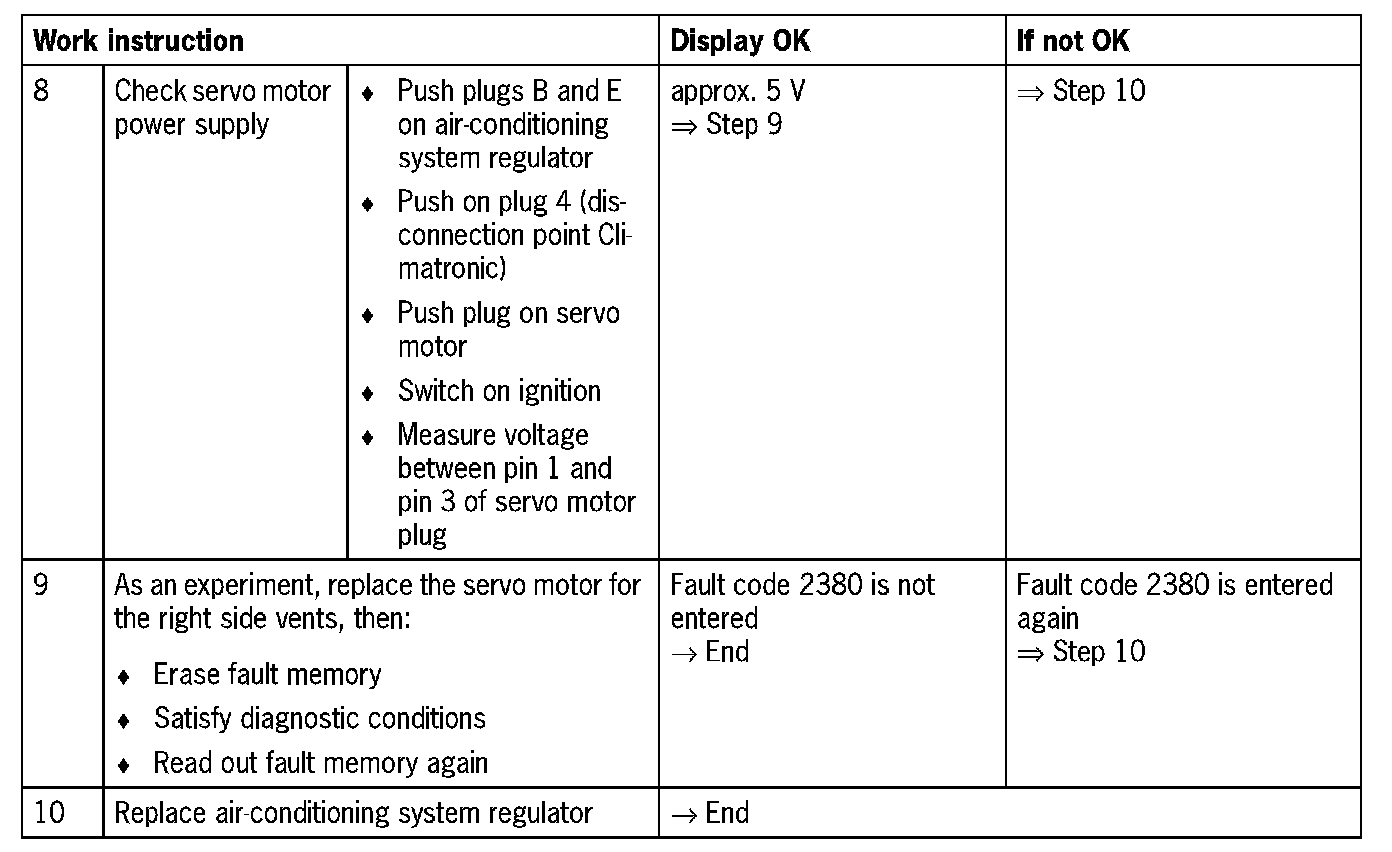 Fault code 2380Servo motor for right side vents
