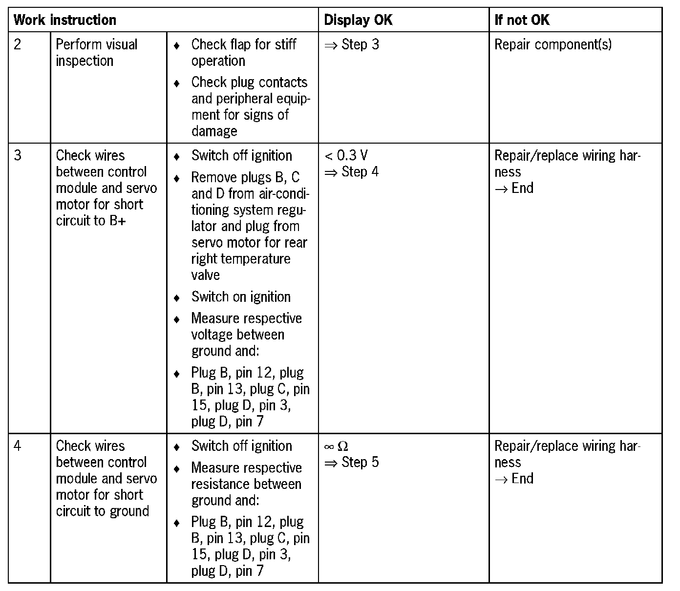 - Plug B: Pin 13 'Right temp. valve (servo motor for rear right temperature valve CLOSED)'