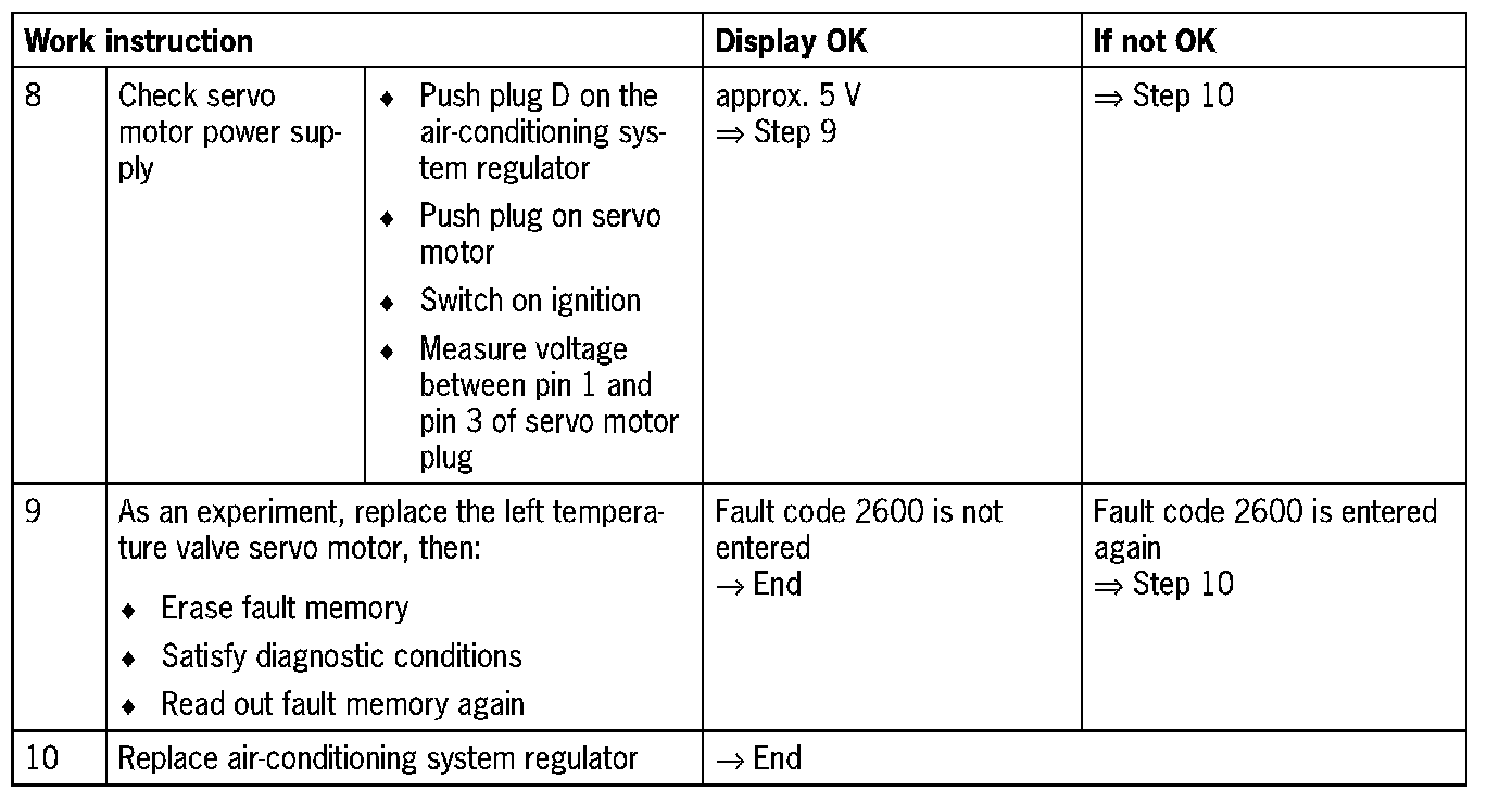 Fault code 2600Servo motor for rear right temperature valve