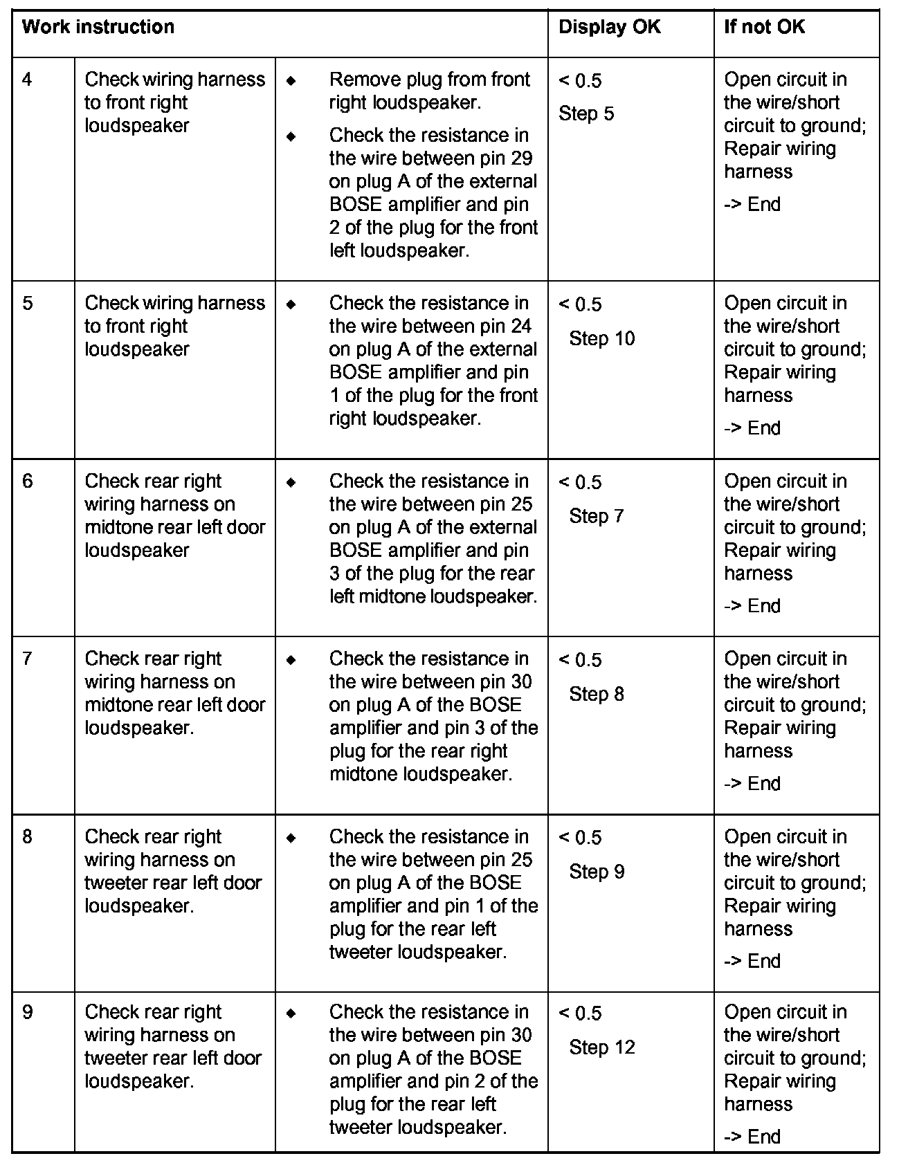 External BOSE amplifier, plug A, pin 24, pin 29, pin 25, pin 30