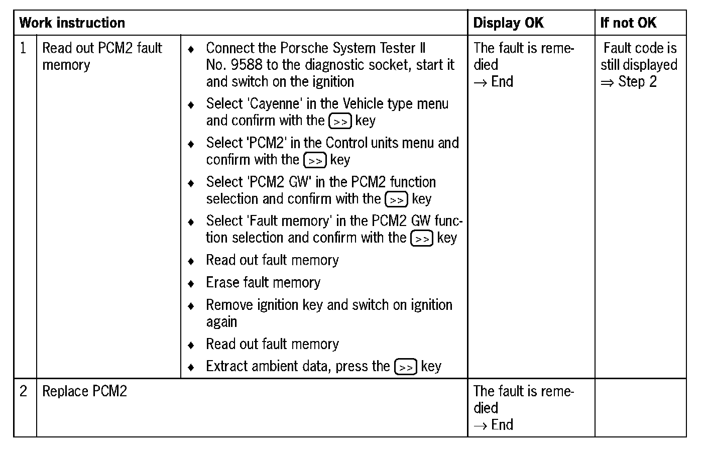 Diagnosis/troubleshooting on the PCM2