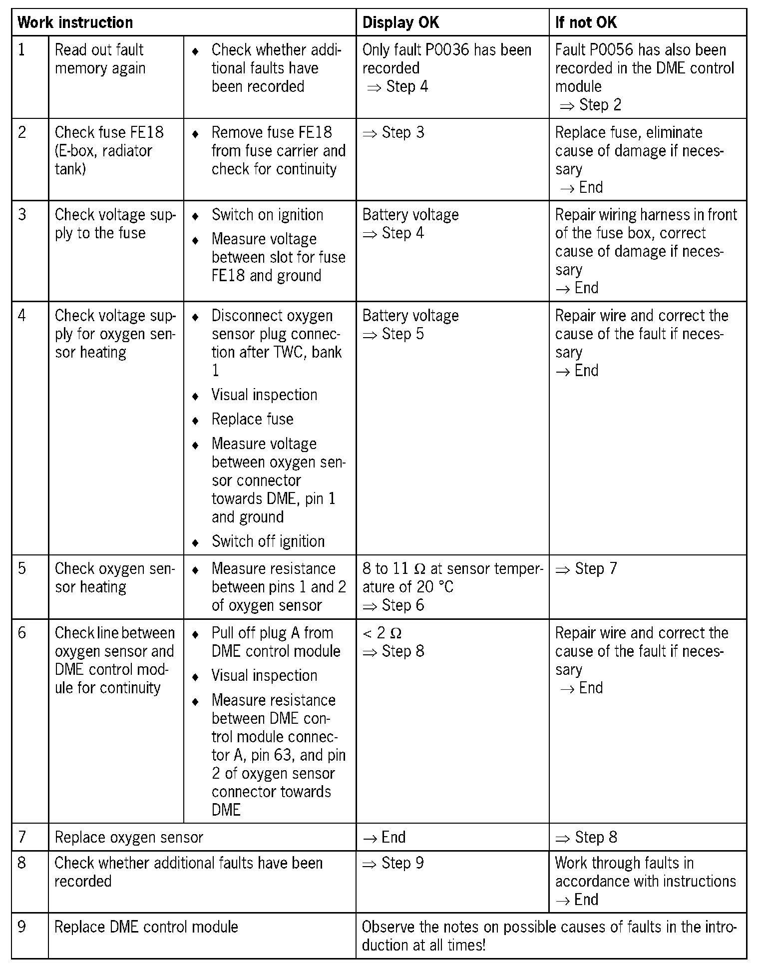 - Oxygen sensor heating faulty (heating resistance too high)