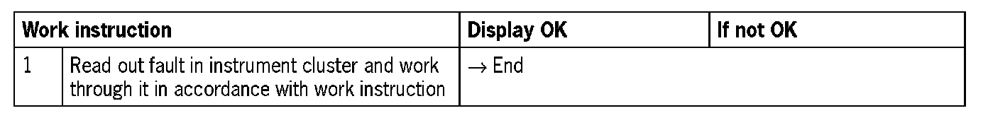 - Read out fault memory in instrument cluster and work through it in accordance with the work instructions in the Technical Manual, Diagnosis, Instrument Cluster.