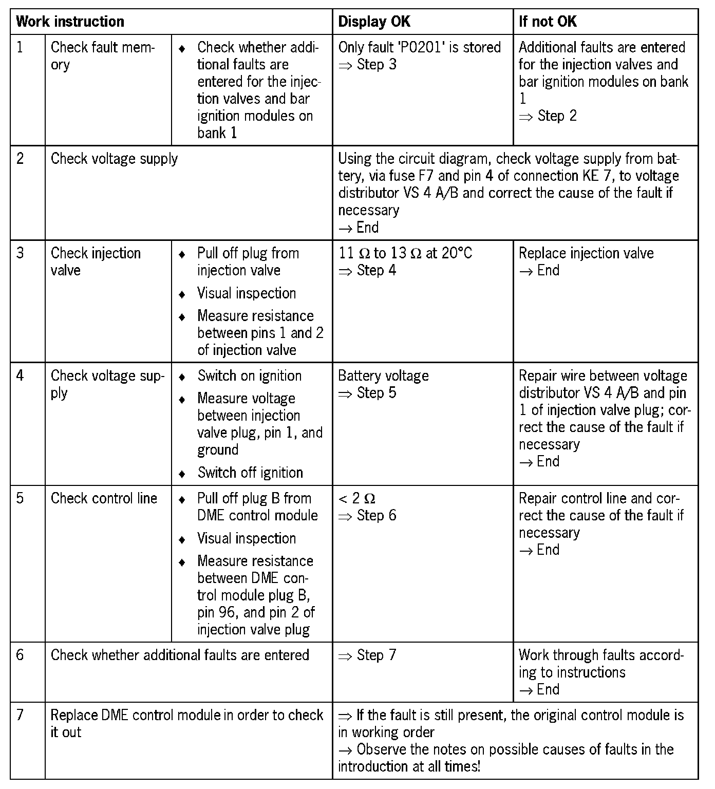 - Open circuit in voltage supply between injection valve and fuse