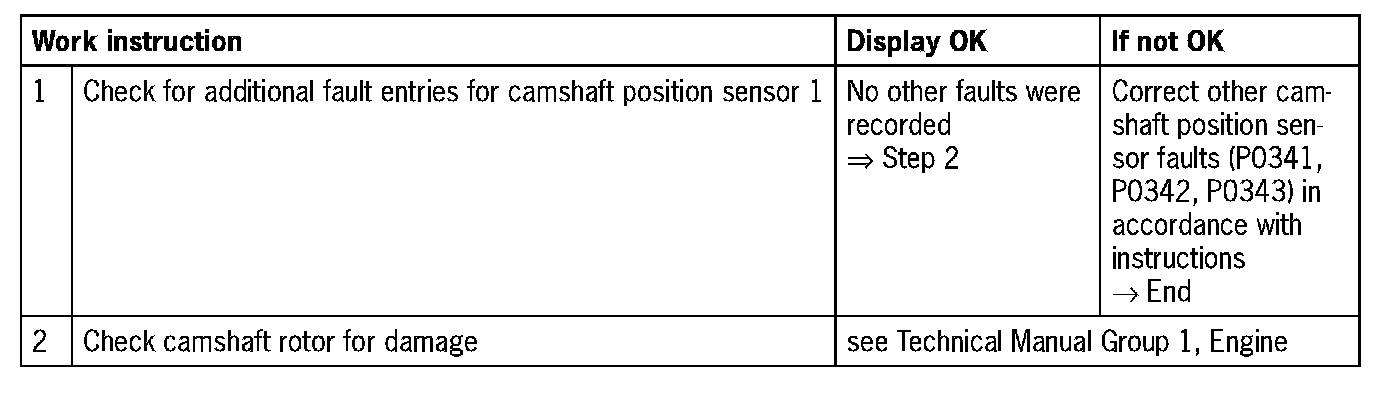 - No other camshaft position sensor faults (P0341, P0342, P0343)